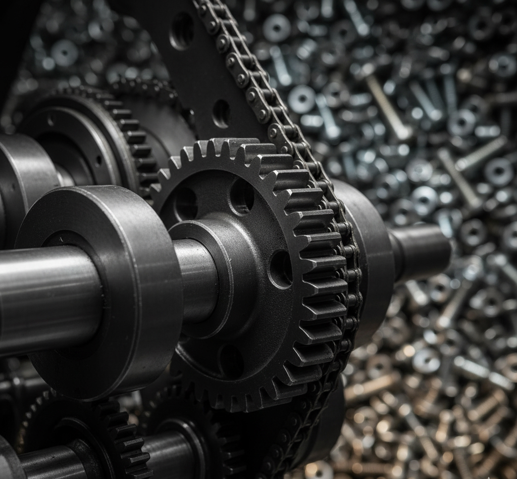 • Mecánica y Transmisión: Elementos de sujeción, rodamientos, correas, cadenas y sistemas de movimiento.